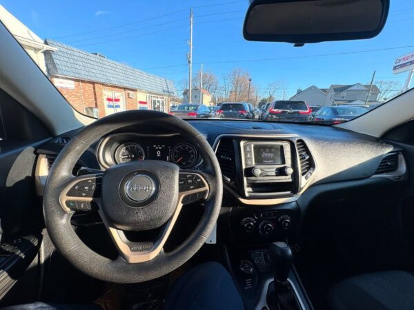 The 2014 Jeep Cherokee Sport is a base-model SUV that features a 184-horsepower, 2.4-liter “Tigershark” four-cylinder engine paired with a 9-speed automatic transmission. It comes with cloth seating, 17-inch steel wheels, and a choice of 2WD or 4×4, with the 4×4 models equipped with the Active Drive I system for all-weather and on-road confidence. The vehicle has a cargo capacity of 54.9 cubic feet and can tow up to 4,500 pounds when properly equipped.