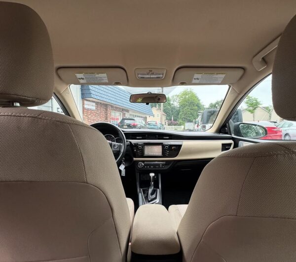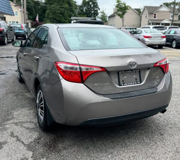 The 2014 Toyota Corolla LE is a compact sedan from the 11th generation, featuring a 1.8L 4-cylinder engine producing 132 horsepower and a standard continuously variable transmission (CVT). It offers good fuel economy, with an EPA estimate of 29 mpg city and 38 mpg highway. Key features include a 6.1-inch touchscreen with Bluetooth and Entune, a backup camera (standard on LE), power windows and locks, and a 60/40 split folding rear seat.