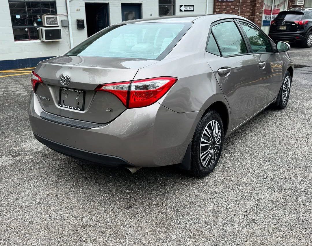 The 2014 Toyota Corolla LE is a compact sedan from the 11th generation, featuring a 1.8L 4-cylinder engine producing 132 horsepower and a standard continuously variable transmission (CVT). It offers good fuel economy, with an EPA estimate of 29 mpg city and 38 mpg highway. Key features include a 6.1-inch touchscreen with Bluetooth and Entune, a backup camera (standard on LE), power windows and locks, and a 60/40 split folding rear seat.