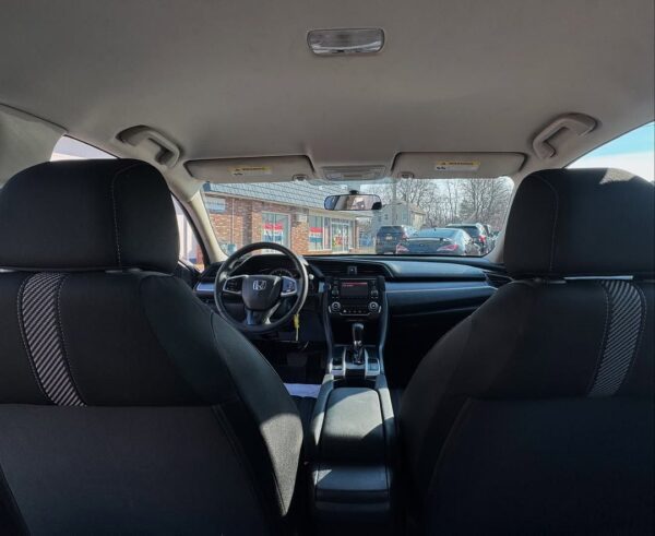 The 2016 Honda Civic LX is the base model sedan, equipped with a 2.0-liter 158-horsepower engine, available with a Continuously Variable Transmission (CVT) or a 6-speed manual. It features a redesign with a new body style, a digital/analog gauge cluster, a backup camera, Bluetooth, automatic climate control, and a capless fuel filler. The LX trim’s fuel economy is an estimated 31 mpg city / 41 mpg highway.