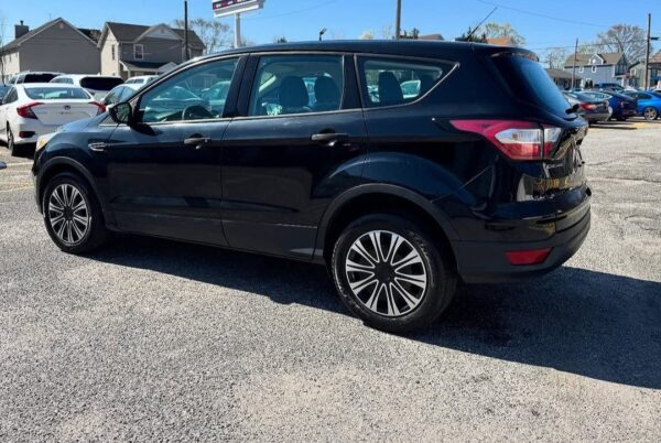 The 2017 Ford Escape S is the base model, equipped with a 168-horsepower 2.5L engine, front-wheel drive, a 6-speed automatic transmission, and a suite of essential features like a backup camera, Bluetooth, and keyless entry. It has a distinct exterior with black mirrors and grille, 17-inch steel wheels, and LED tail lights, while the interior includes manual seat adjustments, cloth seats, and a basic infotainment system with a 4-inch screen. Key updates for the 2017 model year across the lineup include revised exterior styling, an electronic parking brake, and improved storage solutions.