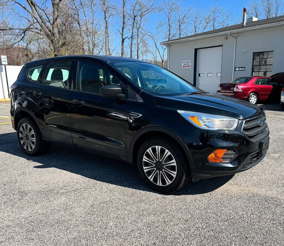 The 2017 Ford Escape S is the base model, equipped with a 168-horsepower 2.5L engine, front-wheel drive, a 6-speed automatic transmission, and a suite of essential features like a backup camera, Bluetooth, and keyless entry. It has a distinct exterior with black mirrors and grille, 17-inch steel wheels, and LED tail lights, while the interior includes manual seat adjustments, cloth seats, and a basic infotainment system with a 4-inch screen. Key updates for the 2017 model year across the lineup include revised exterior styling, an electronic parking brake, and improved storage solutions.