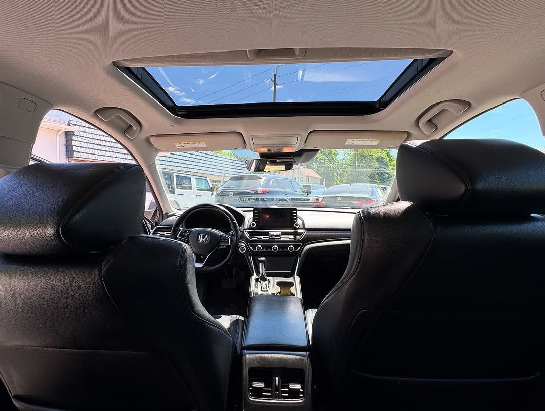 The 2018 Honda Accord LX is the base model of the redesigned 10th generation Accord, featuring a 1.5L turbocharged four-cylinder engine with a CVT transmission, 192 horsepower, and an estimated fuel economy of 30 city/38 highway mpg. Standard features include LED exterior lighting, a rearview camera, push-button start, dual-zone automatic climate control, a 7-inch touchscreen, and the Honda Sensing suite of driver-assist technologies, such as lane keep assist and adaptive cruise control. The interior has cloth seats, and the LX comes with 17-inch alloy wheels and a capless fuel filler.