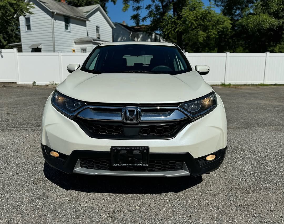 The 2018 Honda CR-V EX is a trim level featuring a 190-horsepower 1.5L turbocharged engine, Honda Sensing safety features including adaptive cruise control and lane keeping assist, and a 7-inch touchscreen with Apple CarPlay and Android Auto. Key standard features include remote engine start, heated front seats, a one-touch power moonroof, dual-zone automatic climate control, and Smart Entry with a push-button start. The EX also adds a multi-angle rearview camera and a blind spot information system with a cross-traffic monitor.